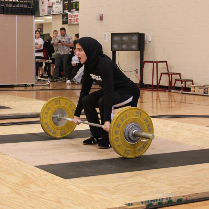 In this March 13, 2010, photo provided by Kulsoom Abdullah via her website on Thursday, June 9, 2011, Abdullah competes in the 2010 Open Champs at the Branch weightlifting event in Flowery Branch, Ga. Abdullah, a 35-year-old Atlantan, has been barred from entering the U.S. senior nationals in Iowa next month because her Muslim faith requires that she cover her arms, legs and head, which violates international rules governing weightlifting attire. (AP Photo/Kulsoom Abdullah)
