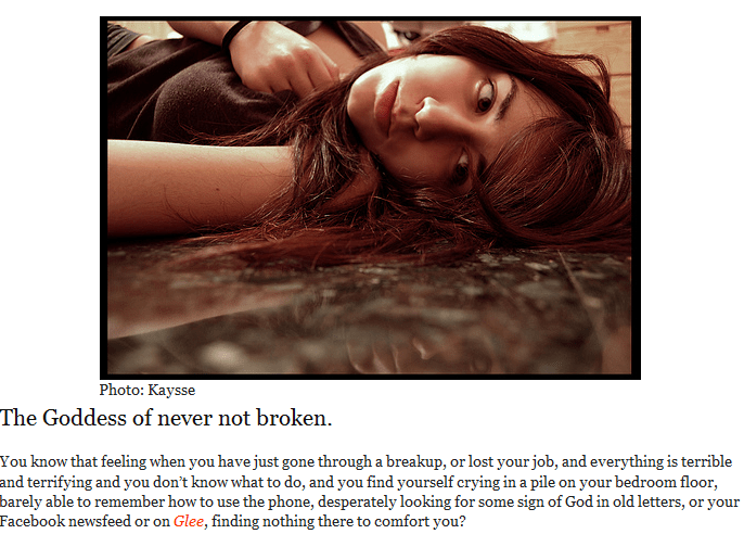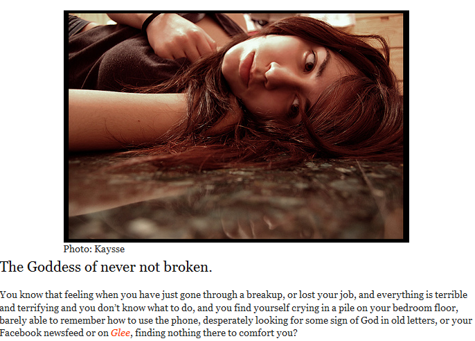 My visit to a Hindu temple last November left me thinking – boy do I have alot to learn about the Hindu religion. ALOT. So, this article in the fantastic elephant journal resonated with me as it gave me a little more insight into a particular Hindu deity. But even more importantly, it was just so fantastic as it talks about those times when life just cracks you open – and the opportunities that present themselves to you in those times. Click here to read this fantastic article by Julie JC Peters of the elephant journal.