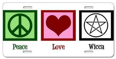 Image reference: http://www.cafepress.com/+peace_love_wicca_aluminum_license_plate,546381074
