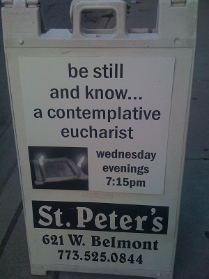 Last night, I found myself in that situation. I had a great deal on my mind, and made a decision that I really needed to have a contemplative worship experience. I found myself googling a church that had been on my list all of 2010, but that I did not have the chance to visit. I located the address, and confirmed that there was indeed a Wednesday evening service. After wrapping up my work for the day, I hopped on Chicago’s CTA Red line and made my way to the North side of Chicago to attend a contemplative Eucharist at St. Peter’s Episcopal Church.