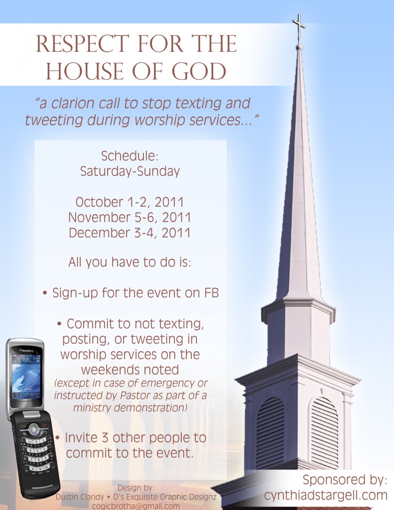 Cynthia Stargell, a minister of music and entrepreneur thinks not. She has launched a campaign called “Respect for the House of God,” focused on taking back the sacred space from technology.